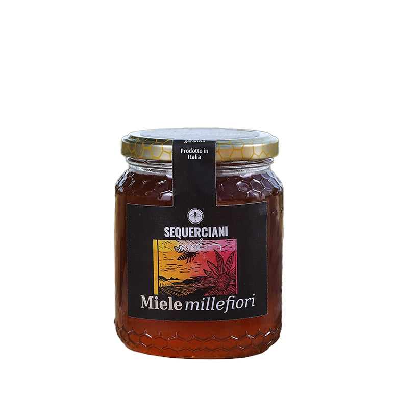 Der Bio-Honig, den wir bei Sequerciani produzieren, ist ein Mehrblütenhonig, da unsere Bienen, wenn sie am Morgen aus ihrem Stock schwärmen, auf die Blumen der großen Wiese unterhalb der Hütte, auf die Blumenmischung, die wir für die Reben verwenden, oder auf die Obstbäume rund um die Villa fliegen können.